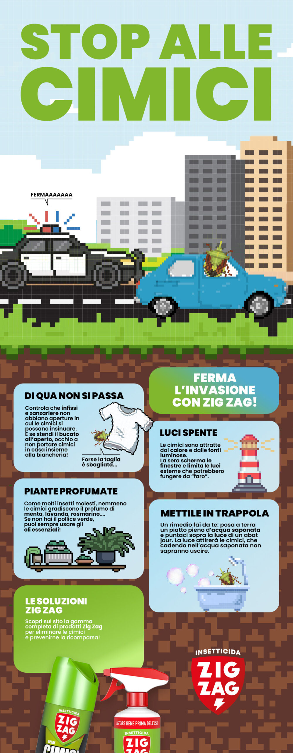 Zig Zag è il tuo miglior alleato contro le cimici: i suoi prodotti specifici abbattono quelle già presenti e ne prevengono la ricomparsa per settimane.