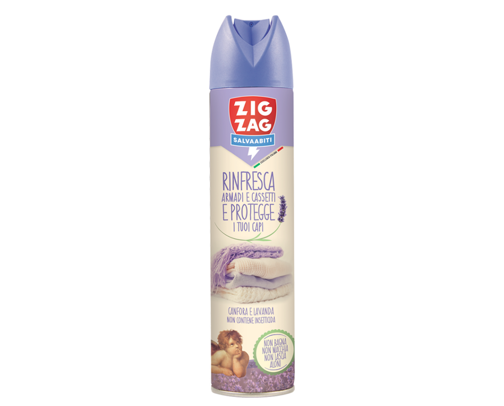Spray all’essenza di canfora e lavanda in formulazione asciutta. Protegge, rinfresca e profuma armadi, cassetti nonché i capi e la biancheria contenuti al loro interno.